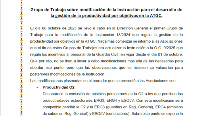 La percepción de la productividad ERG4 (conseguida por APC-GC) en las mismas condiciones que los suboficiales perciben la ERG5.